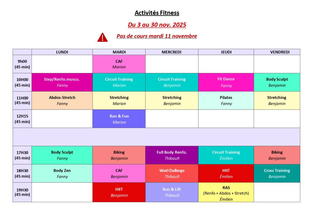 Pour télécharger le planning du 3 au 30 novembre, cliquer ici