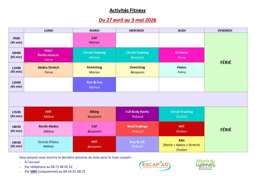 Pour télécharger le planning du 27 avril au 3 mai, cliquer ici